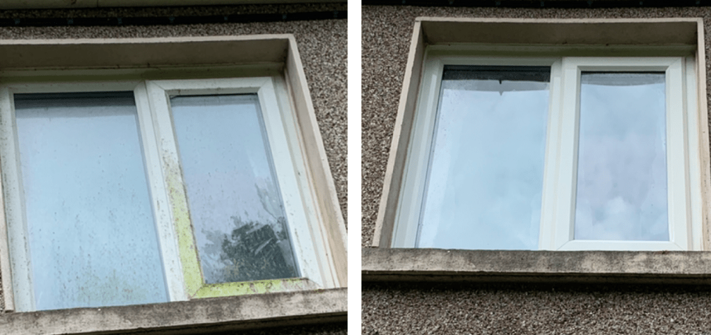 Transforming algae covered windows into spotless PVC and crystal clear glass